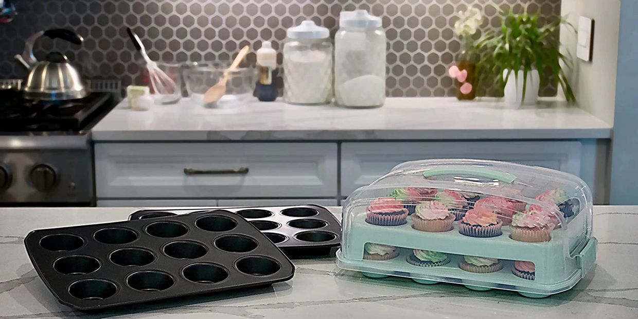ULTRA STURDY CUPCAKE CONTAINERS WITH TWO MUFFIN PANS: Made of sturdy plastic that will last through many uses. This cupcake container Measures 15 inches x 11 inches. Holds 24 Standard-Sized cupcakes.